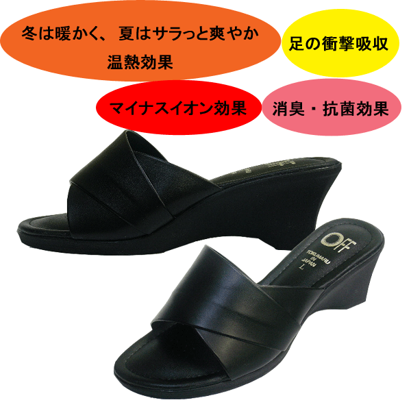 抗菌・消臭効果、備長炭で冬は暖かく、夏はサラっと 温熱効果 中敷が柔らかくて履きやすい安心の日本製 オフィスサンダルにも使えるウエッジサンダル【あす楽対応】【売れ筋】【オススメ】